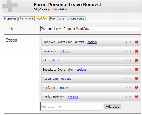 We recommend that a visual representation of the workflow be drawn up prior to creating it in AppliTrack. As an example, I have provided a form here which has a workflow in the real word: