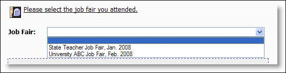 3) The Recruitment Efforts that have the "Show On Job Fair Form" checkbox checked will show in the Job Fair dropdown. If no Recruitment Efforts have that column checked this section will not appear.