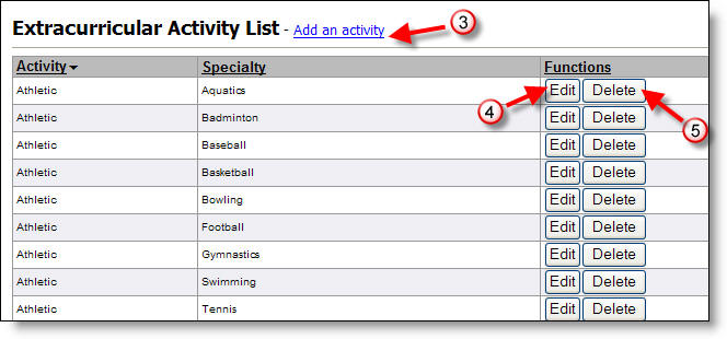 2) Click on the link for the list you wish to edit, for example--Edit Extracurriculars or Edit Locations.